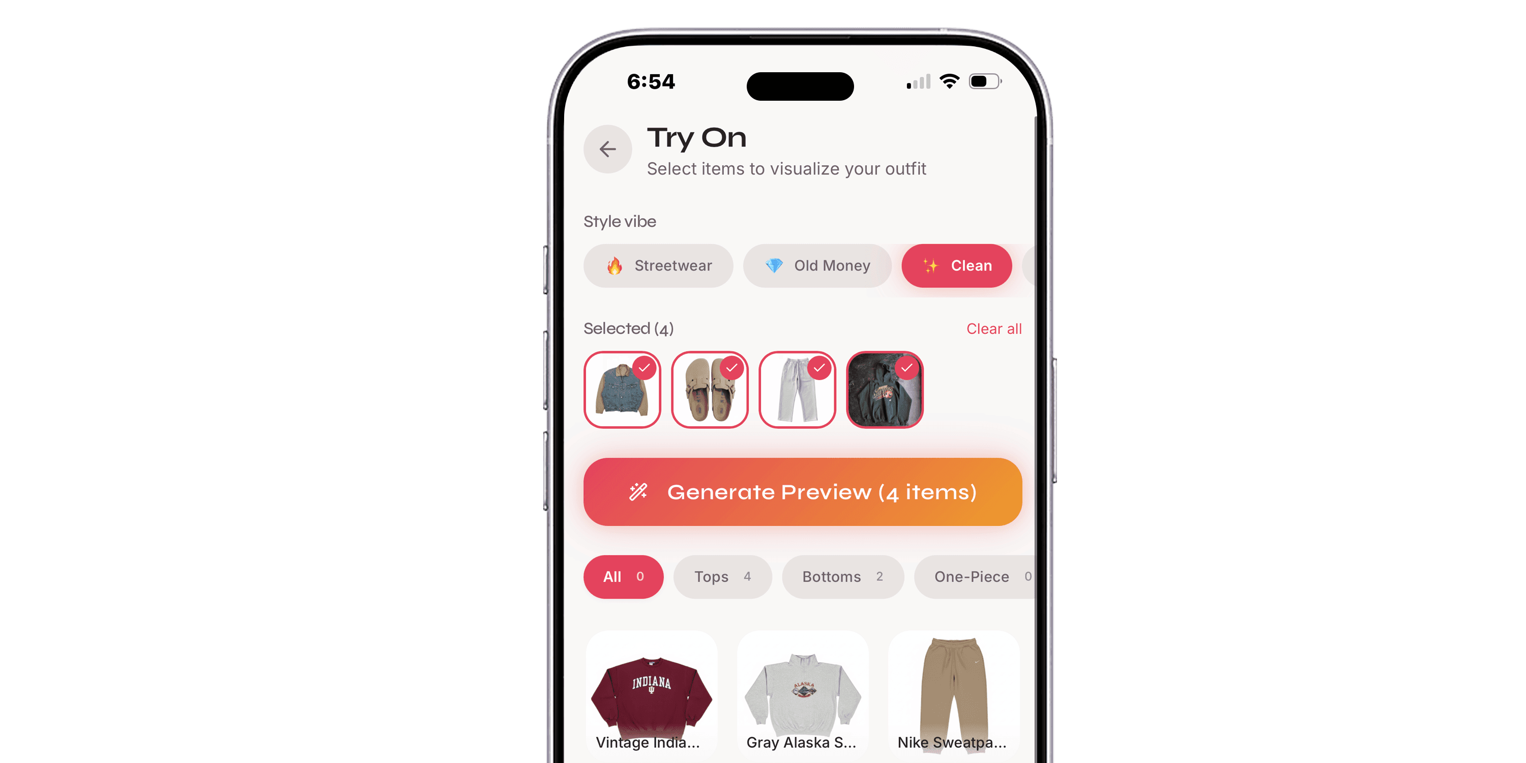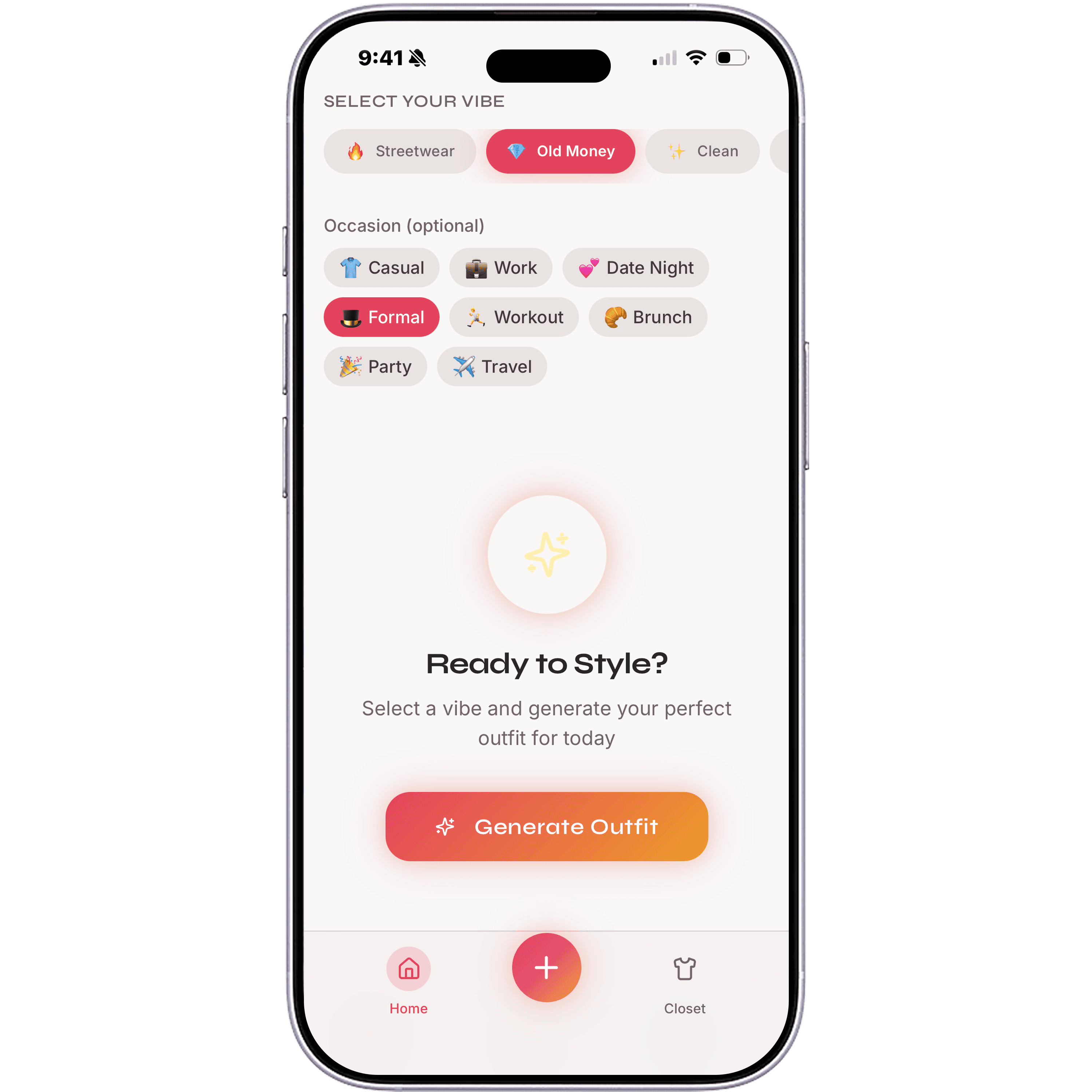 Generate outfits based on your event and vibe. The AI generated outfits are guranteed to increase your style.